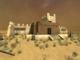 Okay, and now onto some level design. These are some captures of the fof_tramonto map, based on early forts made by Spaniards. This one is a singular oasis surrounded by a sea of dunes, creepy dungeons and adobe buildings.