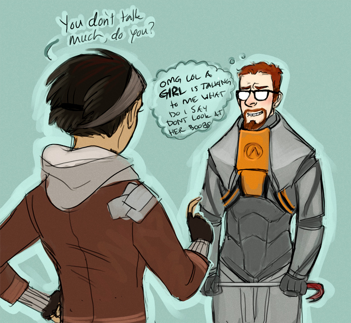 Gordon does talk you frickin' morons, you just don't hear him. What do you think pressing E to scientists signified in HL1? That was Gordon talking to them. As a design choice Valve do not give Gordon any dialogue. It's up to the player's imagination to insert their own dialogue for Gordon.